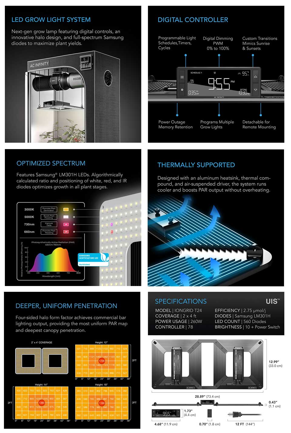 IONGRID T24, FULL SPECTRUM LED GROW LIGHT 260W, SAMSUNG LM301H, 2X4 FT. COVERAGE