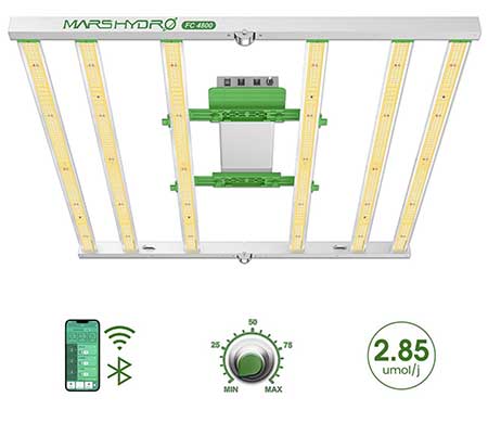 Mars Hydro Smart FC 4800 LED Grow Light is part of the Mars Hydro smart grow system, which enables intelligant control and program of your LED with ease using the Mars Hydro mobile app. It features densely mounted Samsung LM301B chips and a full spectrum light with uniform photon distribution for an even PPID and optimal PPF across the canopy is the perfect choice for your 4x4 ft indoor garden.
